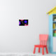 Blue Pink and Black Chaotic Swiss Curved Text Wallpaper