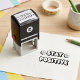 Really happy with this stamp. I no longer need to use environmentally unfriendly stickers for my business packaging which is great! The stamp comes out evenly and clearly and doesn’t require a messy ink pad so I’m very happy. Excellent quality of printing