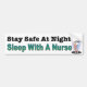 Stay Safe At Night, Sleep With A Nurse. A funny, slightly cheeky and saucy tribute to our hard working nurses. This sticker also has a cartoon of a very cute female brunette in a nurses uniform.