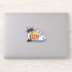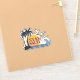 Laptop contour sticker in a variety of sizes perfect for summer vacation at the beach.  Designed with tropical palm trees, seagulls, and waves on the beach.  Text says, "Stay salty."