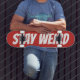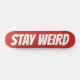 STAY WEIRD bold text custom design skateboard deck. Cool wooden skate board design for boys and girls. Fun Birthday gift idea for kids. Personalise with your own unique name, funny quote or monogram letters. Unique Birthday gift idea for skater son, grandson, nephew, cousin, daughter, sister, brother, friends, boyfriend, girlfriend etc. Big letter typography design with customisable red background colour. Also nice as Christmas Holiday present for children and adults. Upload your own skateboarder logos or graphics optionally.