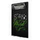 Add a bold splash of personality with this vibrant “Stay Weird” design, hand-lettered by the artist and accented with magical stars. The contrasting neon green and white lettering pops against a deep black background, creating a visually striking and uplifting piece for anyone who dares to be different. Whether you're shopping for yourself or a free-spirited friend, this design brings a fun, empowering message to life on this clipboard. Great for gifting, self-expression, or simply adding a touch of weird to your world.