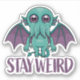 Vector cartoon illustration of cute baby Cthulhu monster with big eyes with Stay Weird text. Tags: cthulhu, octopus, monster, lovecraft, chibi, squid, sea, ocean, animal, creature