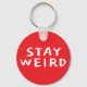 STAY WEIRD funny red keychain gift. Custom colour keychain with fun typography.