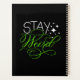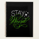 Welcome to our unique hand-lettered design, crafted with introverts, geeks, nerds and free spirits in mind, “Stay Weird” celebrates individuality with a bold statement. The word “Stay” stands out in crisp white block letters, while “Weird” dances in vibrant green flourished script, adding a touch of whimsy. Whether you’re embracing your inner geek or honouring your introverted nature, this design is a perfect expression piece.