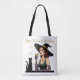 Carry your essentials in style with this glamourous "Stay Wicked, Darling" tote bag, featuring a stunning pinup witch and her trusty black cat. This chic bag is a fabulous eco-friendly choice for shopping, daily use, or carrying your spell books. Makes a unique and bold gift for anyone who loves retro flair and witchy vibes.