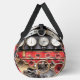 I actually had been searching other sites for a duffle gym bag and I couldn't find any. This one is just what I was looking for with all the features. The inside zip pocket, the outside mesh pocket and LOTS of room inside. Love the printing. Really like how the floral print turned out.