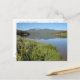 Summer photo at Steamboat Lake, in north Routt County, Colorado with flowers blooming and Sand Mountain reflecting off the lake waters in postcard.