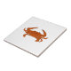 This decorative ceramic tile features a bright orange steamed Atlantic blue crab, also known as hard or Maryland crab. Blue crabs are cooked by steaming and eaten as-is or added to soups, crabcakes, or other dishes. This illustration depicts a male blue crab or "Jimmy crab".