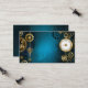Turquoise, textured, steampunk background with brass and gold gears, a silver key and the clock. Steampunk style.