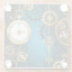 Turquoise, textured, steampunk background with brass and gold gears, a silver key and the clock. Steampunk style.