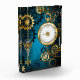 Turquoise, textured, steampunk background with brass and gold gears, a silver key and the clock. Steampunk style.