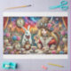 A delightful scene unfolds where reality meets fantasy in this vibrant watercolor illustration. Colourful flowers and clocks accent an elaborate tea setting where our steampunk girl and her white rabbit companion share stories. Soft watercolor effects blend with detailed whimsy to create a dreamy atmosphere. This design speaks to the heart of every wonderland dreamer.
