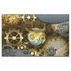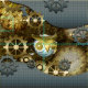 steampunk, steam, owl, mechanical, technology, gears, gold, blue, fibre,