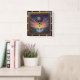 This square wall clock showcases a highly detailed, dimensional illustration of a fantasy landscape, likely inspired by Steampunk themes. A large, ornately designed hot air balloon floats above a spectacular central waterfall. The sky is a dramatic mix of sunset colors and a deep starry night. The foreground features hills covered in colorful, stylized mushrooms. The illustration is framed by an elaborate carved border with bronze scrollwork and small turquoise gems. The artwork is set within a wide, dark outer wood-look frame, which is simulated using high-detail artwork and is not real wood.
