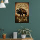 A steampunk bison stands in a field, its body adorned with intricate gears and pipes. The background suggests a western setting.