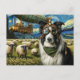 AI generated art of a funny Border collie with sheep and a steampunk blimp