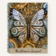 This is a steampunk styled notebook featuring a butterfly with vintage clocks and the inside gears of clocks in shades of light blue and brown. The text on the front cover is customisable and would make a great personalised gift.