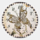 Round digital art design with harlequin border, antique clock face and Steampunk style metal butterfly