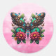 Steampunk Butterfly with Gears and Flowers Classic Round Sticker