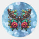 Steampunk Butterfly with Gears and Flowers Classic Round Sticker