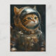 Steampunk cat astronaut postcard. Whimsical image of a tabby cute kitty in a steampunk astronaut costume.