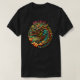 I give wanted to give this a 4 instead of a 5 because these Basic DARK T0shirts run unexpectedly SLIM or Narrow. Which is great if you do not have a potbelly, but I have a paunch. It isn't the shirt's fault that I've got a beer belly. The design and shirt itself is a quality cotton shirt. The color is more of a deep purple, but still a very pretty color. The Basic DARK T-shirts run a bit SLIMMER than the Basic Ts. The neck is a fraction narrower (or seems to be narrower) also. I'm a paunchy middle-aged woman and my neck is 12 inches (31cm) thick and the neckline fell about the same as in the photo of the man, and I had the desire to tug it a bit. So if you're a thick necked man or like loose shirts, be aware these are slimmer shirts. Once I get rid of my lockdown paunch it'll look great. The shirt washed well in cold water with no apparent bleeding. We don't have a dryer, so it hung dry. Did not shrink. Love the colors and the design. The design looks smaller on my shirt than it does on the model on-line. But still, it looks good on the shirt. The printing looks as it does on the model, just the size seems fractionally smaller. Washed garment in cold water, hung dry and design appeared unaffected.