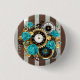 Steampunk Clock and Turquoise Roses on Striped 3 Cm Round Badge