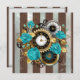 Steampunk Clock and Turquoise Roses on Striped Announcement