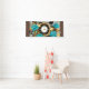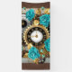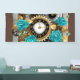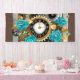 Steampunk Clock and Turquoise Roses on Striped Banner