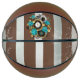 Steampunk Clock and Turquoise Roses on Striped Basketball