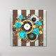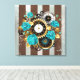 Steampunk Clock and Turquoise Roses on Striped Canvas Print