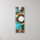 Steampunk Clock and Turquoise Roses on Striped Canvas Print