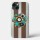 Steampunk Clock and Turquoise Roses on Striped Case-Mate iPhone Case