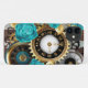 Steampunk Clock and Turquoise Roses on Striped Case-Mate iPhone Case