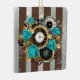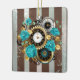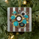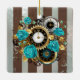 Steampunk Clock and Turquoise Roses on Striped Ceramic Ornament