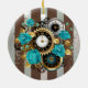 Steampunk Clock and Turquoise Roses on Striped Ceramic Tree Decoration