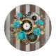 Steampunk Clock and Turquoise Roses on Striped Cutting Board