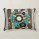 Steampunk Clock and Turquoise Roses on Striped Decorative Cushion