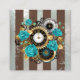 Steampunk Clock and Turquoise Roses on Striped Discount Card