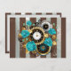 Steampunk Clock and Turquoise Roses on Striped Enclosure Card