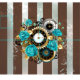 Steampunk Clock and Turquoise Roses on Striped Fabric