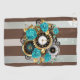 Steampunk Clock and Turquoise Roses on Striped Golf Towel