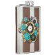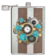Steampunk Clock and Turquoise Roses on Striped Hip Flask