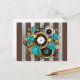 Steampunk Clock and Turquoise Roses on Striped Holiday Postcard