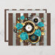 Steampunk Clock and Turquoise Roses on Striped Invitation