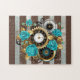 Steampunk Clock and Turquoise Roses on Striped Jigsaw Puzzle