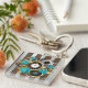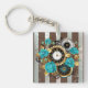 Steampunk Clock and Turquoise Roses on Striped Key Ring