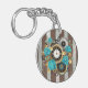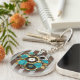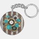 Steampunk Clock and Turquoise Roses on Striped Key Ring