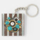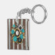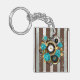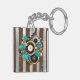 Steampunk Clock and Turquoise Roses on Striped Key Ring